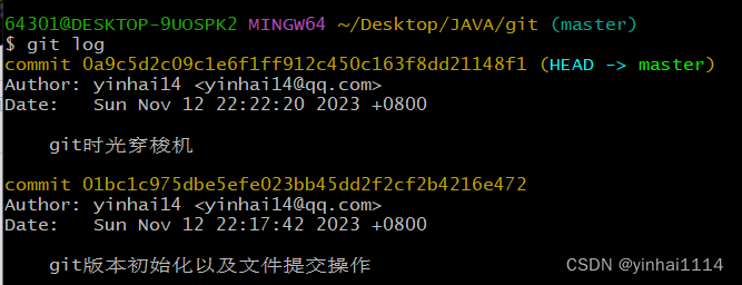 git commit -m 'git版本初始化以及文件提交操作' // /m后为提交的解释