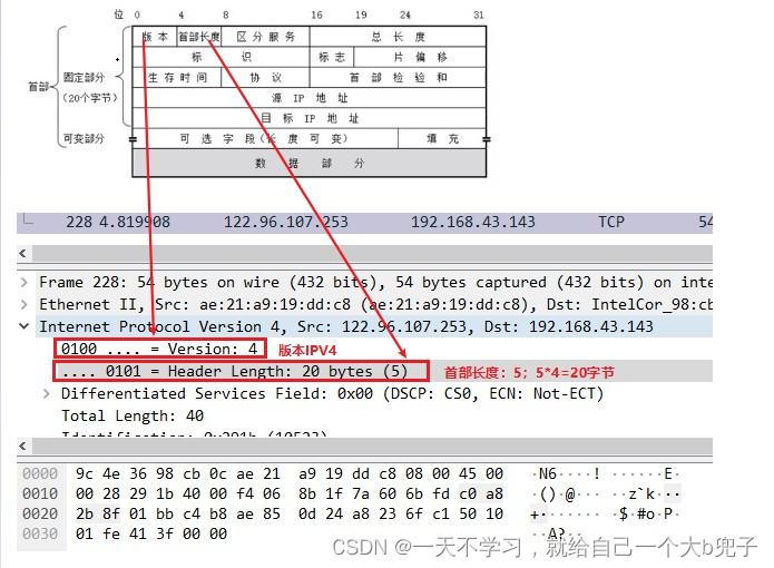 1、网络层数据包报文中,首部得固定长度是20个字节,首部得可变长度部分尾40个字节,总长度为20~60个字节。