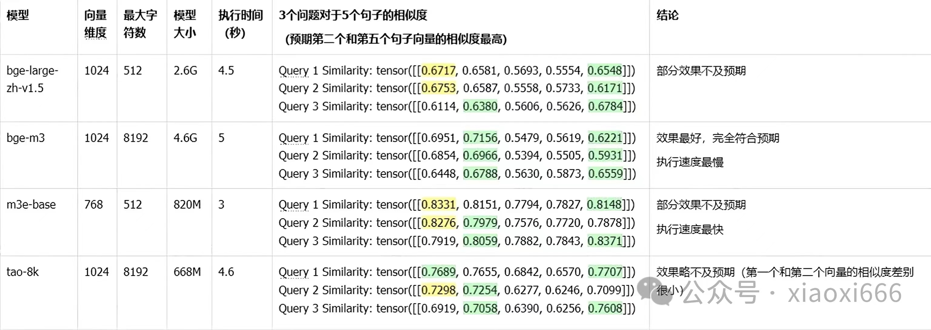 看起来,bge-m3效果最好,tao-8k也不错。但需要注意的是,这两个模型执行耗时也最高。
