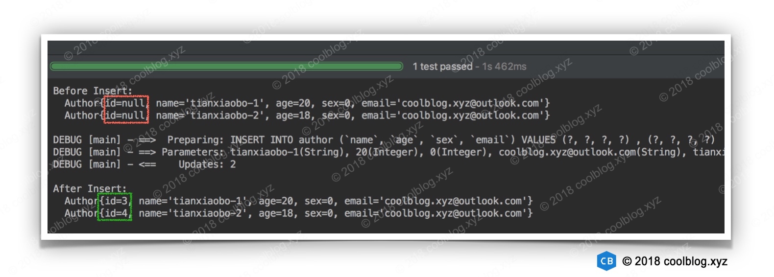 以上就是 Jdbc3KeyGenerator 的原理分析,下面写个示例演示一下。