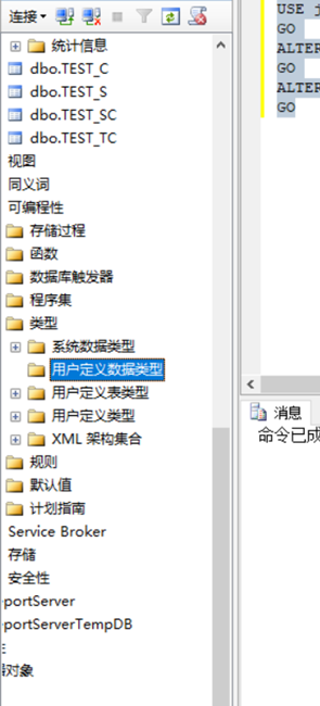 (3) 在“对象资源管理器”中选择“数据库”→“jxsk”→“可编程性”→“类型”→“用户定义数据类型”,发现数据类型Idnum已不再存在;