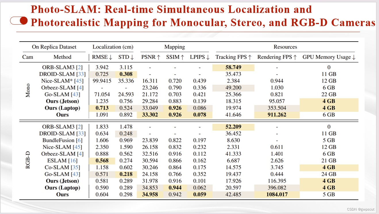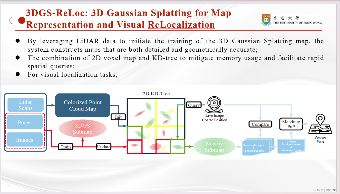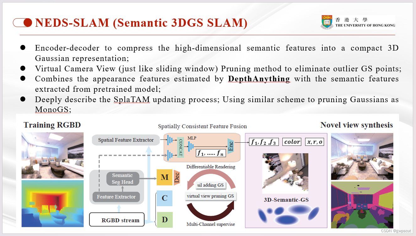 学习笔记之——3DGS-SLAM系列代码解读_gs slam-CSDN博客文章浏览阅读1.9k次,点赞15次,收藏45次。最近对一系列基于3D Gaussian Splatting(3DGS)SLAM的工作的源码进行了测试与解读。为此写下本博客mark一下所有的源码解读以及对应的代码配置与测试记录~其中工作1~5的原理解读见博客:学习笔记之——3D Gaussian Splatting及其在SLAM与自动驾驶上的应用调研_3d gaussian splatting slam-CSDN博客。_gs slamhttps://blog.csdn.net/gwplovekimi/article/details/137546030但由于其相关工作太多了,为此,用本博文记录下对这些工作的调研(以PPT图片的形式)。本博文仅供本人学习记录用~