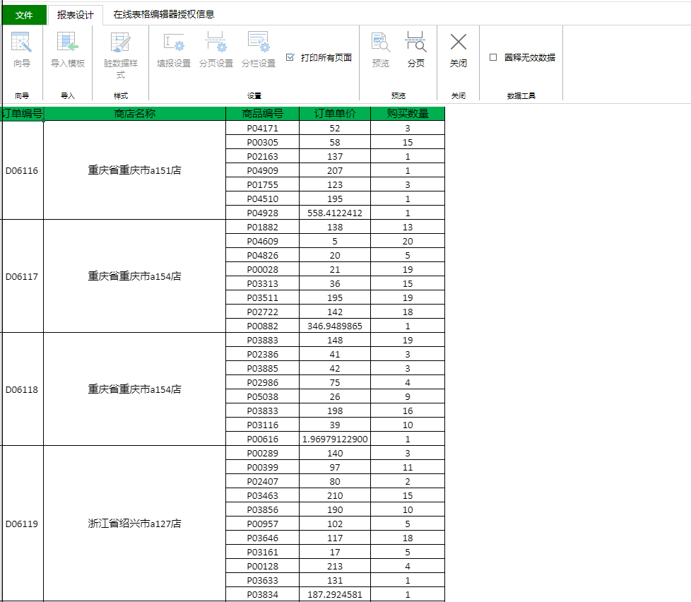 此时点击“预览”,发现“订单编号”与“商店名称”不存在对应关系,