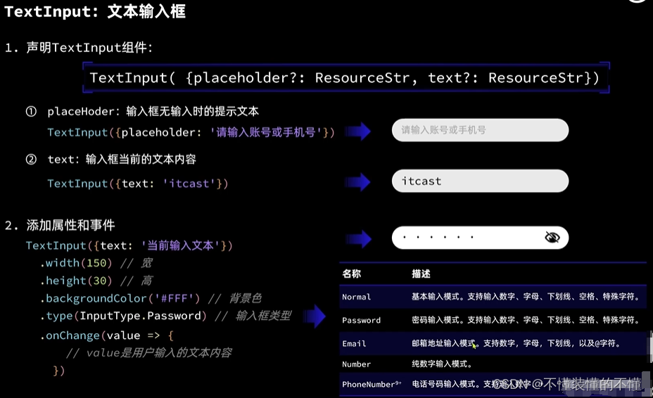 TextInput({placeholder?:ResourceStr, text?:ResourceStr}) 添加属性和事件