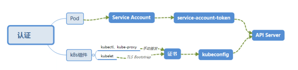 ●自动签发:kubelet 首次访问 API Server 时,使用 token 做认证,通过后,Controller Manager 会为 kubelet 生成一个证书, 以后的访问都是用证书做认证了