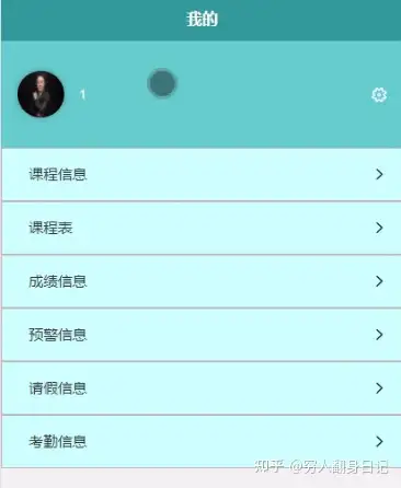 我的,学生在我的页面可以查看课程表、成绩信息、预警信息、请假信息、考勤信息、我的收藏管理等信息,如图5-10所示。