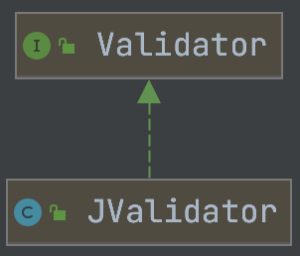 而Validator接口在Dubbo框架中实现只有JValidator,这个通过idea工具显示Validator所有实现的UML类图可以看出(如下图所示),当然调试代码也可以很轻松定位到。