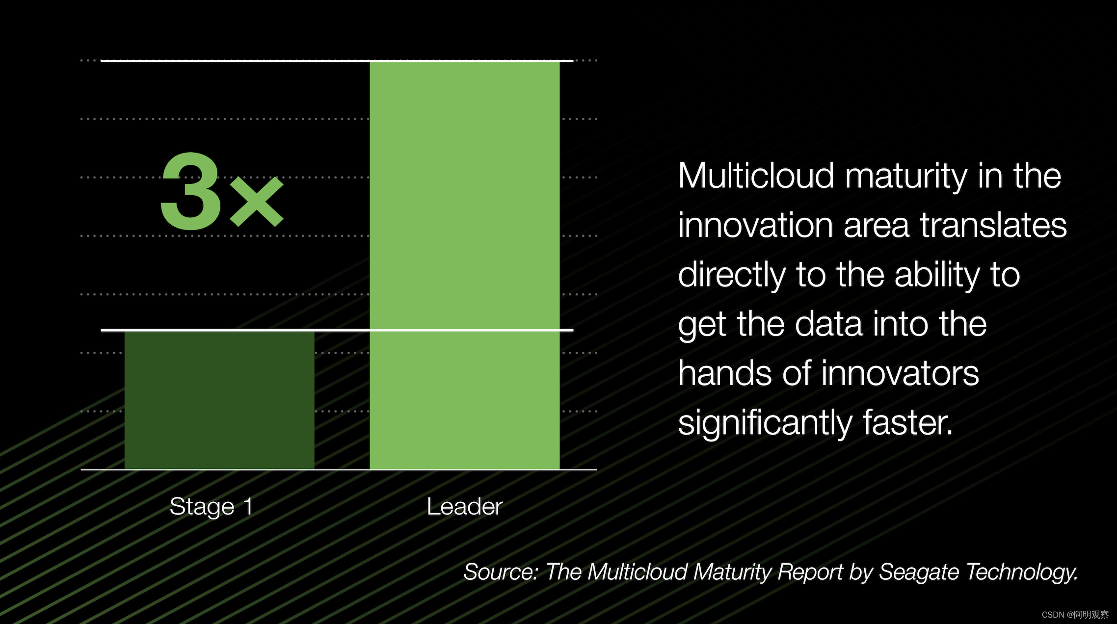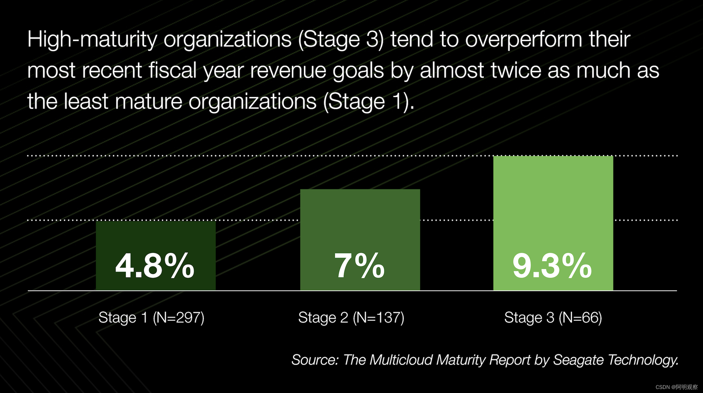 基于更优化的数据成本,释放数据驱动的创新价值,必然对多云成熟度高的企业带来更有现实意义的业务结果。由此,多云模式成熟的企业,其商业地位的强化更能实现。