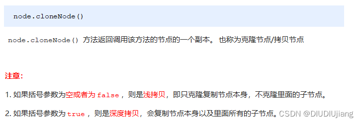 - // 1. node.cloneNode(); 括号为空或者里面是false 浅拷贝 只复制标签不复制里面的内容