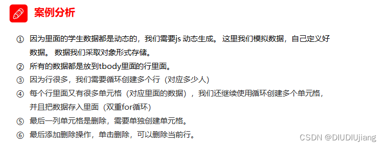 - // 2. 往tbody 里面创建行: 有几个人(通过数组的长度)我们就创建几行