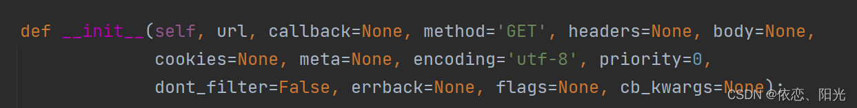 - custom_settings: ⼀个字典 专属于本spider的配置 这个配置覆盖项⽬全局配置,配置需要在初始化前更新,定义类变量,可以更新请求头。