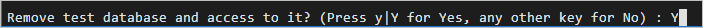 输入Y按下Enter键,删除test库以及对test库的访问权限。