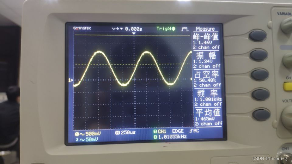 ①将低频信号源输出的频率为1KHz,峰峰值为1.5V的信号接入音频信号输入端12IN01。这里调整输入信号源如下: