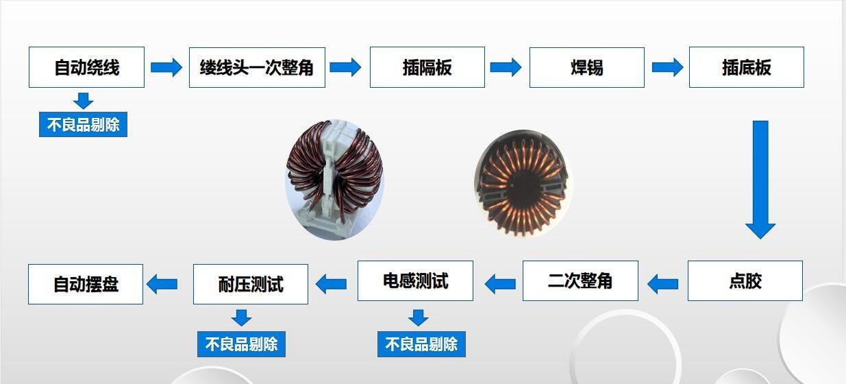 一、磁环电感线圈绕线之电感线圈的具体制作工艺流程如图所示: