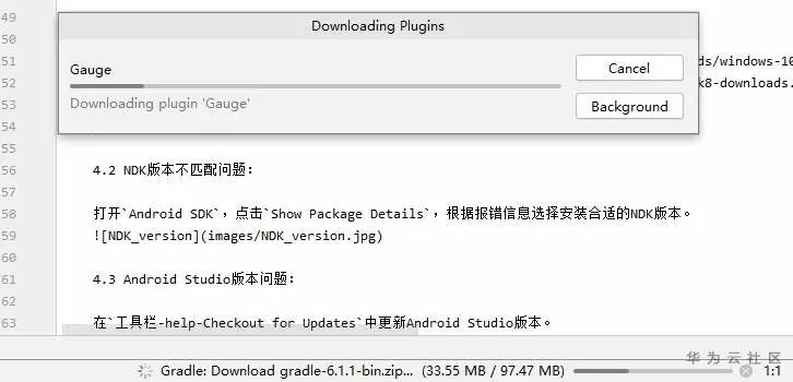 b. 下载失败,则手工下载后,参考download.gradle脚本将 mindspore-lite-1.1.0.aar 文件解压出来后放到对应的目录下(目录也在download.gradle有说明)
