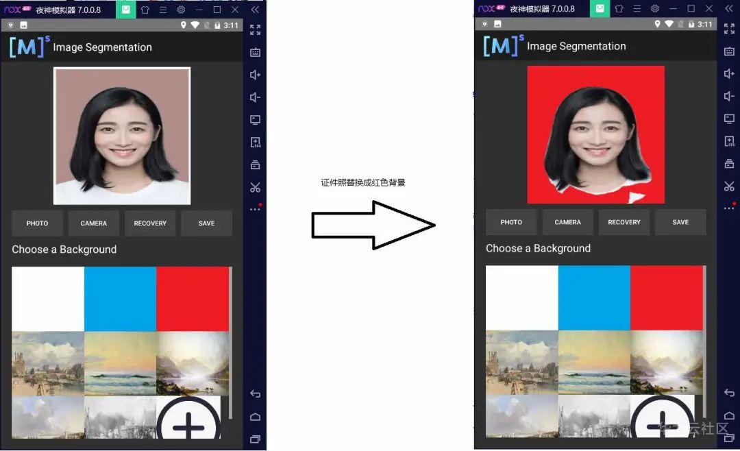9、安装手机体验效果如下:(将一个证件照替换成 大红色背景)