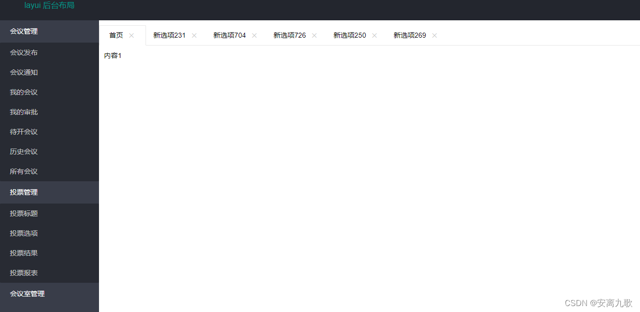 上次我们分享了LayUI的动态树,既侧边菜单。做了这个功能总要有用吧,这次分享的内容就是基于上篇分享的内容进行完善。在点击侧边菜单时,新增选项卡、点击已有选项卡的菜单项更改选中。