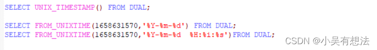 例:FROM_UNIXTIME() : 可以把一个unix_timestamp 秒数,转成指定格式的日期