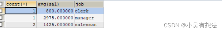 例:统计各个部门group by 的平均工资avg,并且是大于1000的having,并且按照平均工资从高到低排序,order by,取出前两行记录 limit 0, 2
