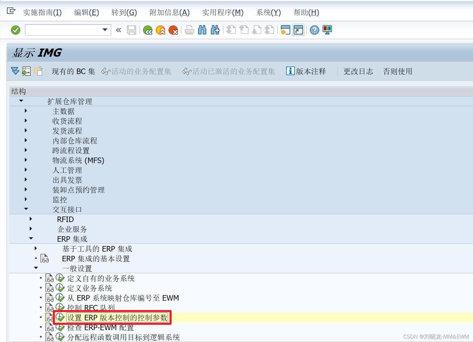 嵌入式系统中也有此配置,路径如下(按照树状图标题 “分布式EWM与ERP集成” 配置,大概率是嵌入式中无法进行配置处理),点击会直接报错,不支持程序******。不晓得是不是嵌入式不支持此功能。