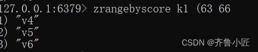返回有序集合中指定范围的元素。示例:v2-v4之间的元素,[闭区间 (开区间
