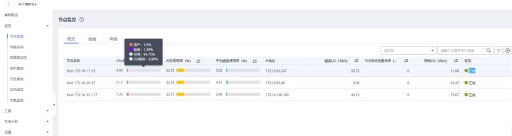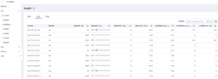 节点监控页面上还可以针对磁盘和网络活动更加详细的信息,例如磁盘功能将对每个节点各个磁盘的IO状态指标进行采集与展示。