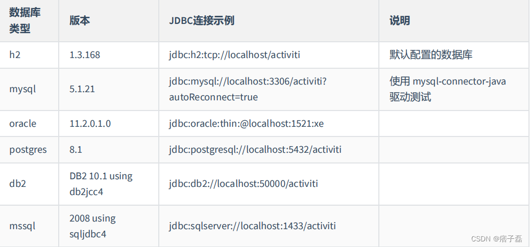 通常在activiti.cfg.xml配置文件中定义一个id为 processEngineConfiguration 的bean.