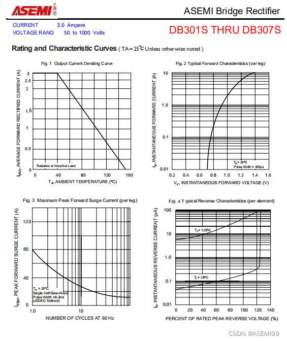 DB307S的电性参数:正向电流3A;反向电压1000V