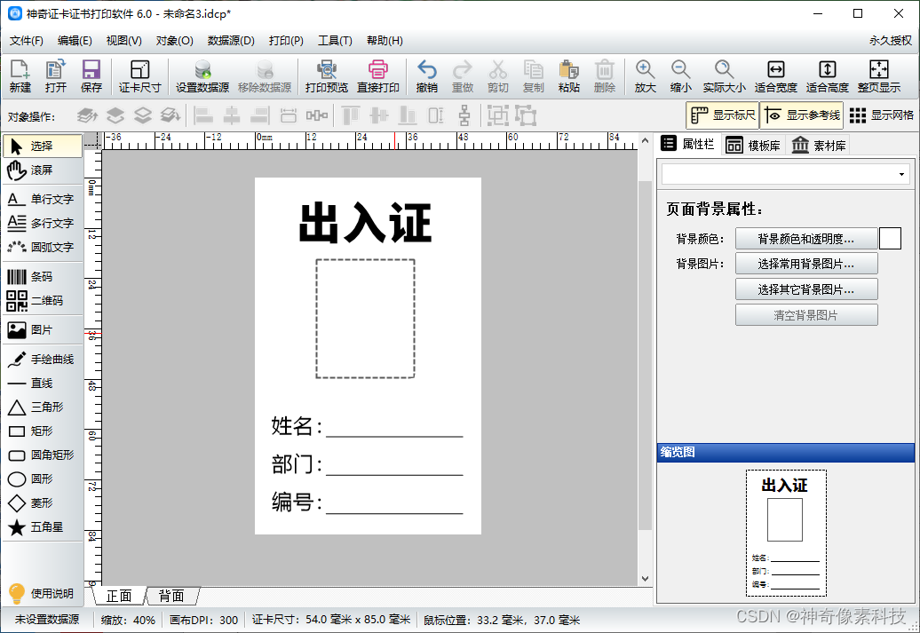 制作出入证时,如果一张一张的添加信息和照片,那就太麻烦了,如果通过数据库的方式就会很容易解决批量的问题。下面我们就使用专业的证卡证书软件来实现批量制作出入证。