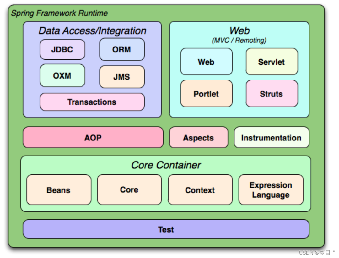spring core:提供了框架的基本组成部分,包括控制反转(Inversion of Control,IOC)和依赖注入(Dependency Injection,DI)功能。