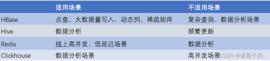 为了应对不同的应用场景,使用不同的数据库作为存储方案