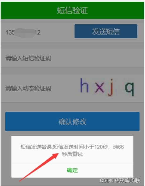主要测试客户端和服务端进行短信发送时,是否存储2min的时间限制。