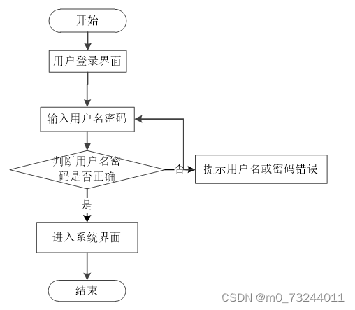 | 登录系统 | 用户打开登录界面 | 输入正确的密码,错误的用户名 | 无法登陆 | 提示用户名不正确,无法登录 | 正常 |