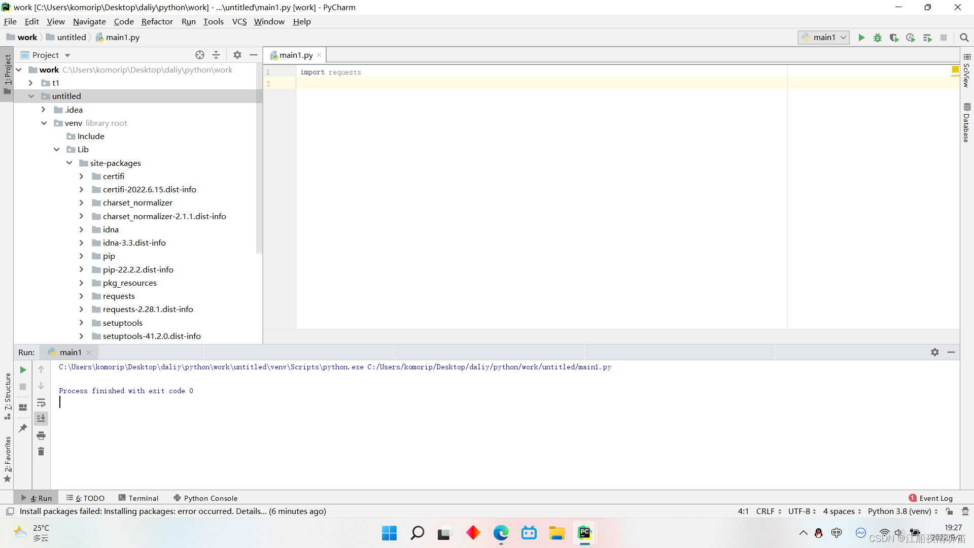 我想安装requests 包 而事实是 我之前已经使用pip下载好了