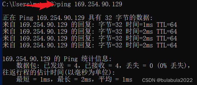 以上设置完成后,可通过 ping 命令验证是否实现网络的互通