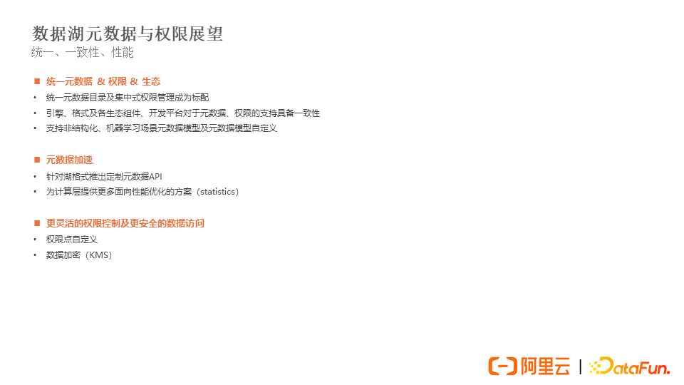 未来,数据湖元数据与权限将在统一、一致性和性能三个方面持续演进。
