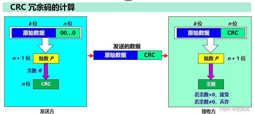 误码率与信噪比有很大的关系。如果设法提高信 噪比,就可以使误码率减小。实际的通信链路并非是理想的,它不可能使误码率下降到零。 因此,为了保证数据传输的可靠性,在计算机网络传输数据时,必须采用各种差错检测措施。 目前在数据链路层广泛使用了循环冗余检验 CRC (Cyclic Redundancy Check) 的检错技术。