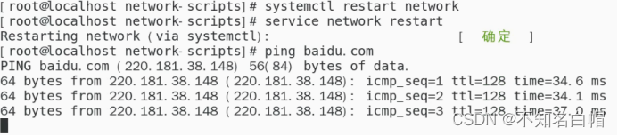 设置系统服务启动网络,重启网卡,ping baidu.com