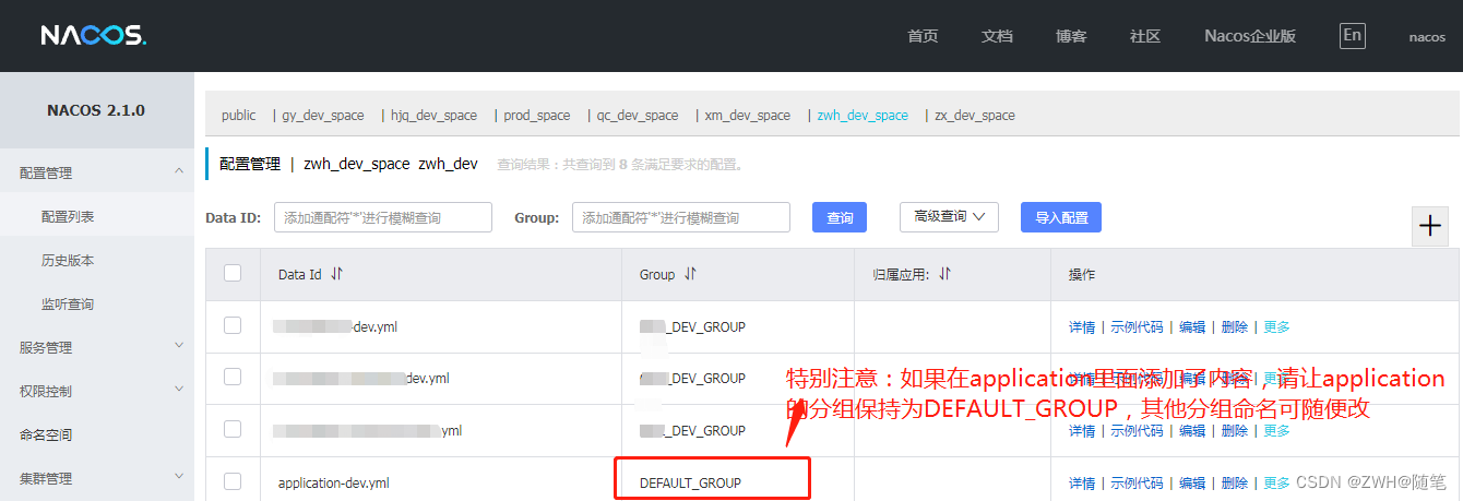 1.创建相应空间及分组:目的是为了大家开发人员可以使用自己的空间,避免负载服务调用错乱(后续需要用到的参数为:命名空间ID,分组Group)