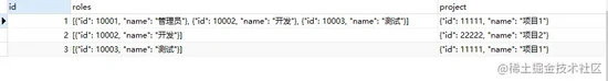 其中 roles 字段存的是 数组