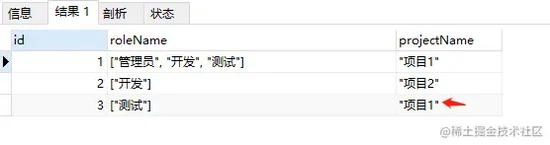 SELECT roles ->> '$[*].name' AS roleName FROM json_test 复制代码