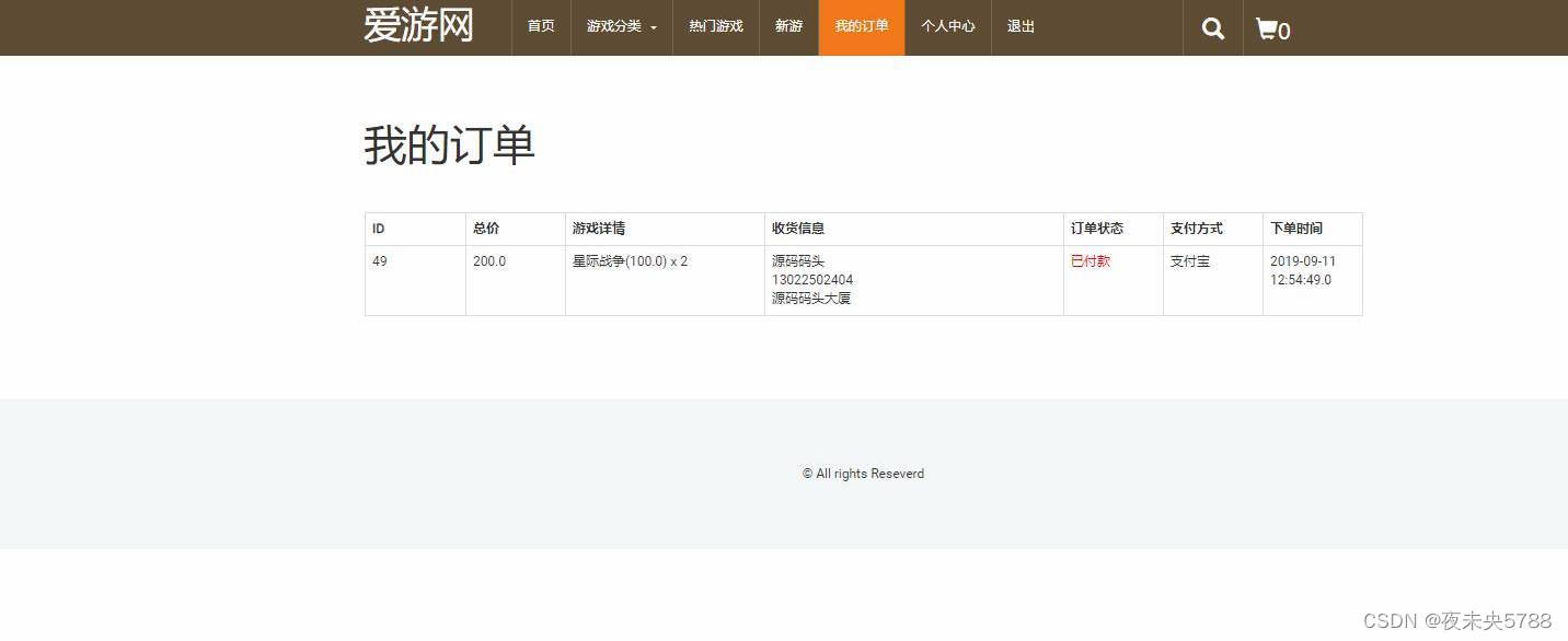 用户首页,用户登录,购买游戏,查看购物车,提交订单,查看订单等功能。