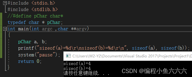 结果占用空间不一样,变量类型自然不一样,所以宏定义不是类型定义。那如果我换成typedef来定义类型呢?
