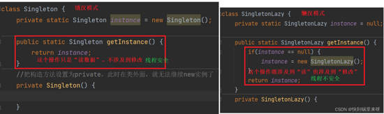 下面对比一下,前面的懒汉和饿汉模式的线程安全问题